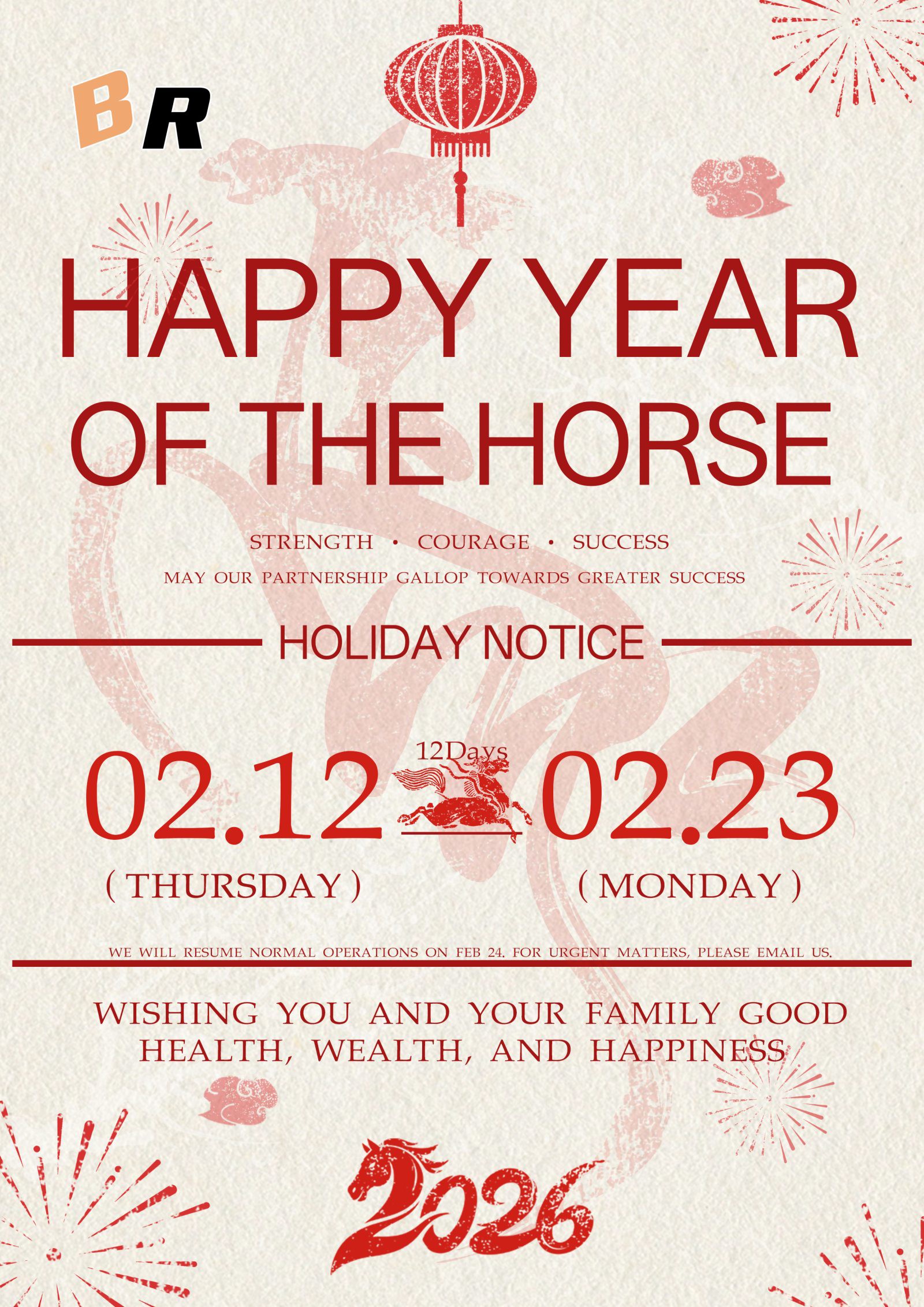ہم آپ کو گھوڑے کے خوشحال اور کامیاب سال کی خواہش کرتے ہیں۔